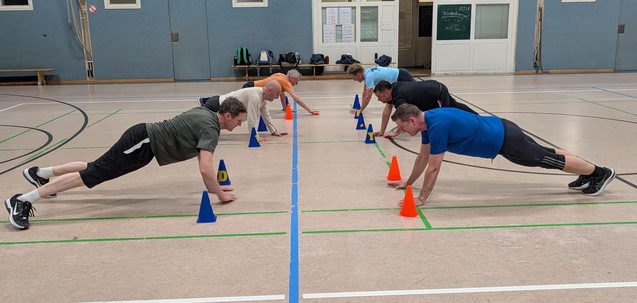 Das Sportangebot mit der Zielgruppe der Sport-Wiedereinsteiger. Runter vom Sofa rein in die Halle und die lange nicht mehr gemachten Sportarten ausprobieren. Nach Erwärmung, Dehnung und Kräftigung probieren wir gemeinsam aus, was alles noch geht oder wieder gangbar gemacht werden kann. Die Zielgruppe sind hier deutlich Männer, es spricht aber nichts gegen weibliche Teilnehmerinnen. Neben dem Hallensport machen wir auch andere Aktivitäten, z.B. mal eine Radtour