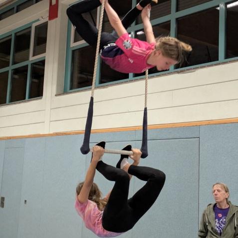 Geschult werden Gleichgewicht, Rhythmusfähigkeit, Koordination, Schnelligkeit, Kraft und Orientierungsfähigkeit. Gemeinsame Gymnastik sowie Übungen am Boden sind ebenfalls Bestandteil jeder Übungsstunde. Bei abwechslungsreichen Spielensteht die Gruppendynamik, das Experimentieren, das Miteinander sowie das Gewinnen und Verlieren im Vordergrund. Die Kinder übernehmen bestimmte Aufgaben, gewinnen Selbstvertrauen und lernen Verantwortung.