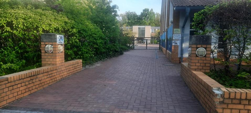 Zugang über Sportplatzparkplatz an der Chausseestraße, vom Parkplatz kommend linke Halle